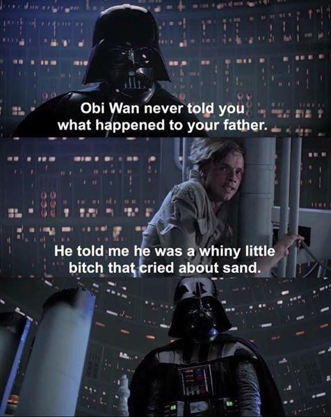 These Darth Vader quotes will help you better understand the famous villain behind the maskenjoy. Also known as Ani during his childhood Skywalker earned the moniker Hero With No Fear from his accomplishments in the Clone Wars. This maybe true but the reason its brought up so much isnt because this piece of dialogue is in and of itself so horrible but its the most amusing example of bad dialogue in a move plagued by the stuff. Featured Darth Vader Memes See All. The post received more than 1600 reactions and 640 shares. All I have left to do is wet sand the case and polish it in 7 days after the paint is dry. Anyway we figured his mindless hatred of sand is a bit stupid. It started off slow with a sound byte uploaded onto YTMND but was. Even stars burn out FR by Isa_Faradien.