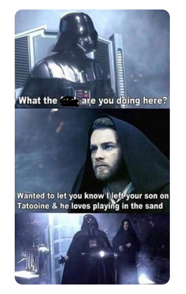 The Facebook page Best of Star Wars Memes posted a screenshot of the I dont like sand scene with the caption When you get invited to the beach and you have to decline shown right. You see in the films Vader was tasked with doing the bidding of his master Emperor Palpatine.